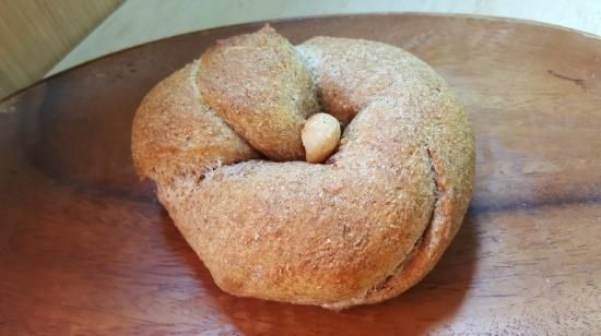 全粒粉100%生地のホールのマカダミアンナッツ巻き込ベーグルです。歯ごたえ、香ばしさ、抜群!