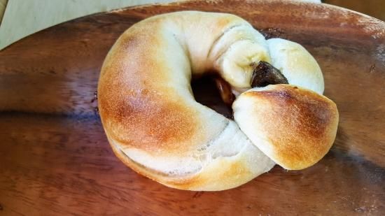 北海道産強力粉、天然酵母、石垣の塩、水、フレッシュバナナ、沖縄県西表島産黒糖,北海道産クリームチーズを巻き込んでいます。