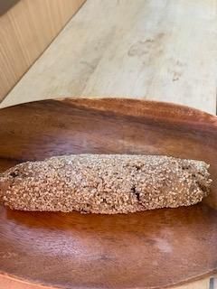 ライ麦とグラハム全粒粉の生地にドライフルーツとくるみが入っているステックベーグル。酸味のある生地にドライフルーツが合います。